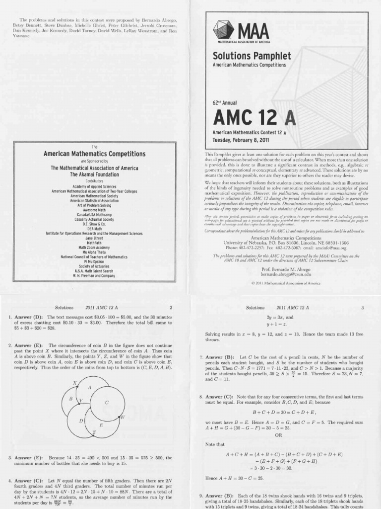 2004 AMC 12 Student Practice Questions Mathematical Association of