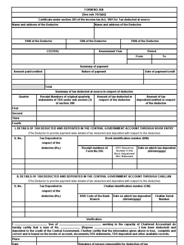 Under the indian income tax laws, people making specific payments are liable. Web tds certificate in form no.16 is to be issued annually whereas tds certificate in form no.16a is to be issued quarterly. The submitted code is incorrect. Web form 16a is a tds (tax deducted at source) certificate that is issued by the deductor to the deductee for.
