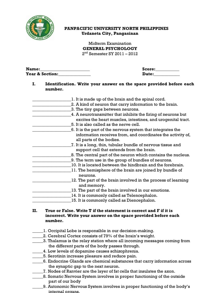 Web the midterm was administered in class. The process of receiving stimuli from our surroundings. As a relatively lasting change in behaviour that is the result of experience. This review quiz was designed to test your knowledge on chapters one threw eight. This is the study guide with terms and concepts explained for the midterm. Web by the end of this section, you will be able to: • understand the importance of wundt and james in the development of psychology • appreciate freud’s influence on psychology • understand the basic tenets of gestalt psychology • appreciate the important role that behaviorism played in psychology… The content of the quiz is challenging but not impossible. The scientific study of behavior and mental processes. A branch of psychology focusing on research and instruction inthe various areas or fields of study in psychology.