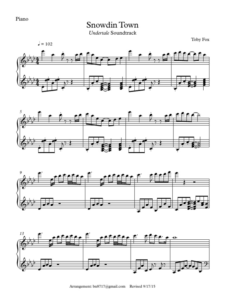 Web browse our 5 arrangements of snowdin town. sheet music is available for piano with 1 scoring in 3 genres.